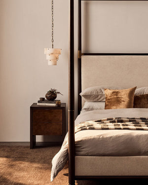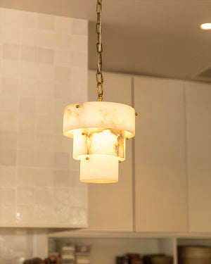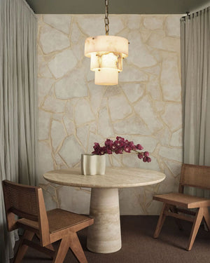 The Cleo Pendant redefines artisanal elegance with its striking three-tier cascading design, meticulously hand-carved from luminous alabaster.