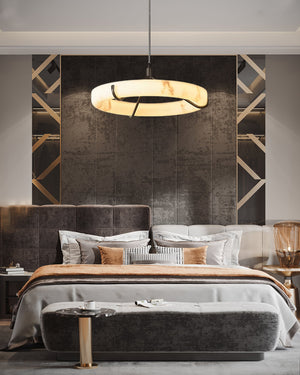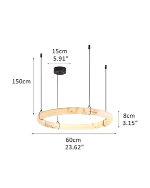 40W Modern Ring Alabaster Pendant Light hanging on black metal pole decor for living room