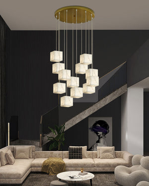 6-light Alabaster large modern Chandelier Lamp in white with mini–Cube, Dia 4.72"