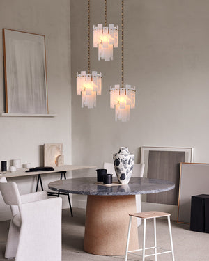 Expertly crafted with precision, the Alabaster Chandelier embodies the artistry of fine design. Each alabaster element is carefully shaped to reveal its natural veining and subtle glow, reflecting exceptional attention to detail. Built for both beauty and longevity, this chandelier is a true statement piece—where craftsmanship meets timeless elegance.