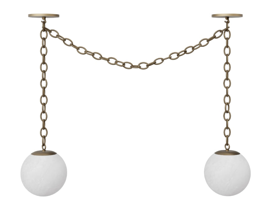 Impress your guests with authentic hand carved and polished alabaster lighting. Swagged with heavy gauge chain, our alabaster globes radiate a soft glow that perfectly creates mood in any space. We're offering your choice of , and with your choice of 8" or 10" globes. The placement possibilities are endless.