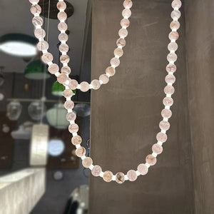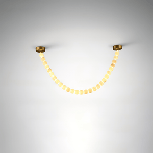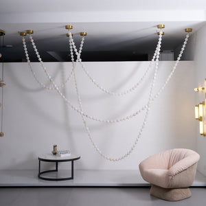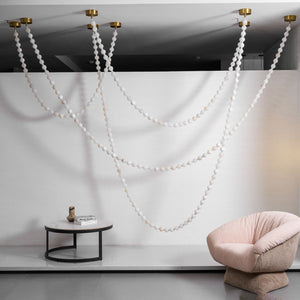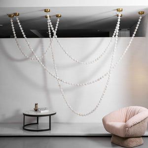 The Alabaster Pearl Necklace Chandelier by Vakkerlight is a breathtaking fusion of sculptural design and refined elegance. Featuring cascading strands of alabaster-like beads, this chandelier mimics the flowing beauty of a pearl necklace draped effortlessly across the ceiling. Each glowing orb casts a warm, diffused light, creating a soft, ambient atmosphere while making a striking visual statement. Anchored by minimalist brass mounts, the flexible arrangement allows for artistic customization in layout and shape. Ideal for luxurious living rooms, grand foyers, or curated retail spaces, this piece embodies Vakkerlight’s dedication to poetic form and timeless craftsmanship.