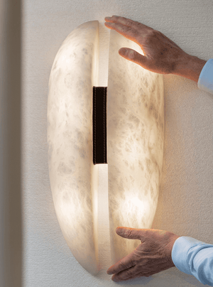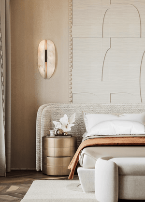 The Oasislives Alabaster Veil Wall Sconce is a stunning embodiment of natural beauty and refined design. Crafted with panels that mimic the delicate, translucent quality of alabaster, it emits a soft, diffused glow that creates a serene and inviting ambiance. The dark, textured accent at the center adds a touch of sophisticated contrast, enhancing the sconce's organic yet elegant allure. Perfect for bringing a sense of luxurious tranquility to bedrooms, hallways, or living areas, this sconce from Oasislives seamlessly blends artisanal craftsmanship with a design inspired by the timeless charm of alabaster.