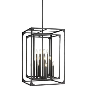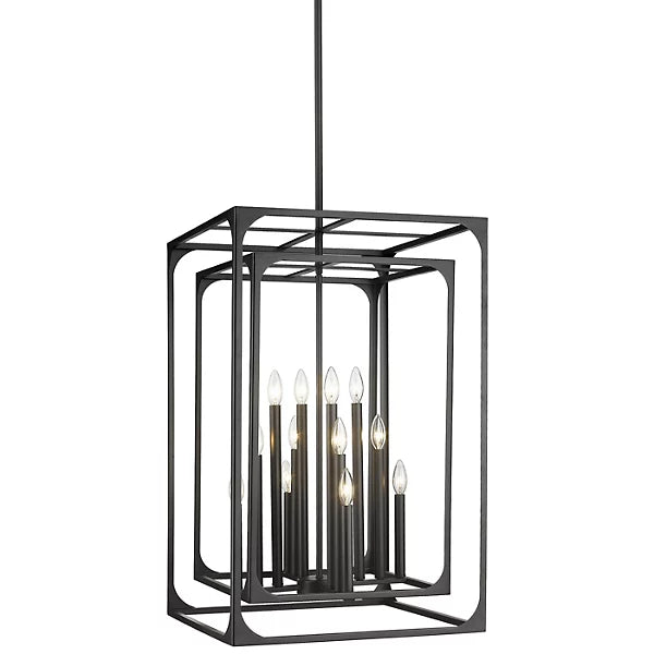 The Albert Chandelier from Alder & Ore adds the dynamic visual power of geometric design. Ideal for modern or industrial spaces, this chandelier showcases an impactful fusion of geometry and minimalist aesthetics. It boasts linear elements and a structured aesthetic, perfectly aligned for the latest minimalist decor trends. The candelabra bulb mounts are thoughtfully arranged in a graduated pattern, taking center stage within a dual-layered, openwork matte black metal frame. Illuminate your space with a bold, captivating style.