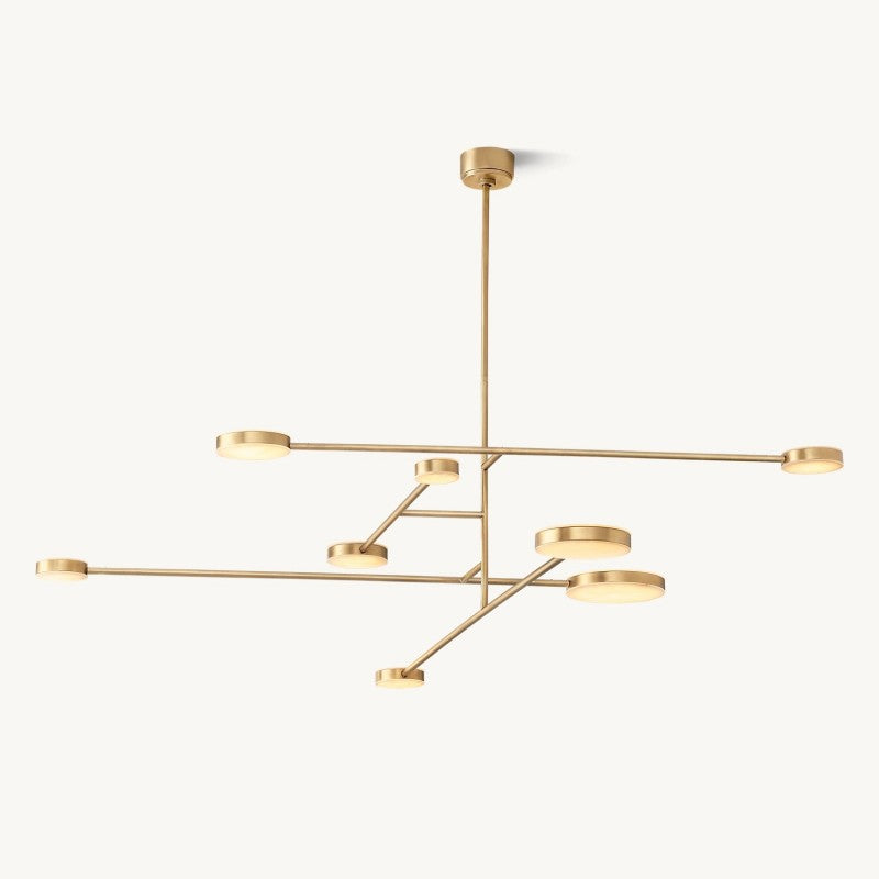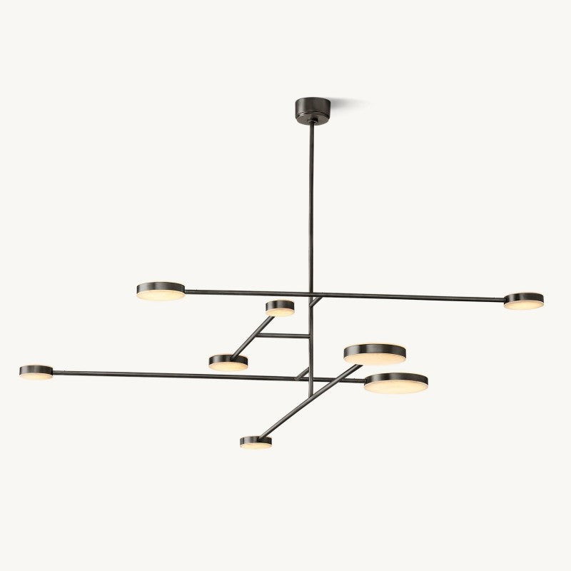 A study in balance and proportion, the contemporary Alexande Collection by Chicago-based designer Ian K. Fowler blends art and functionality. Each disk can be rotated to direct illumination wherever it's preferred, while the slender arms create a kinetic dance of movement in space.