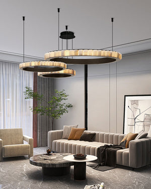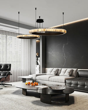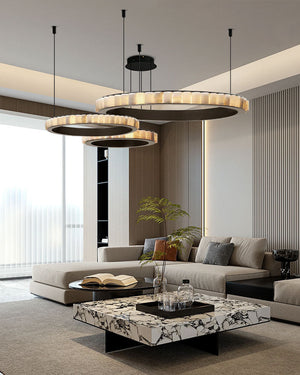 Home American high cord ceiling alabaster circle pendant lamp for living room