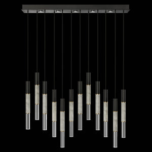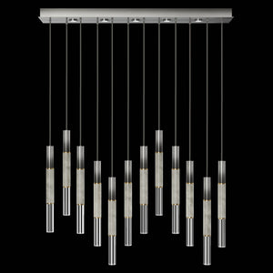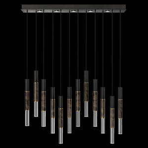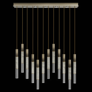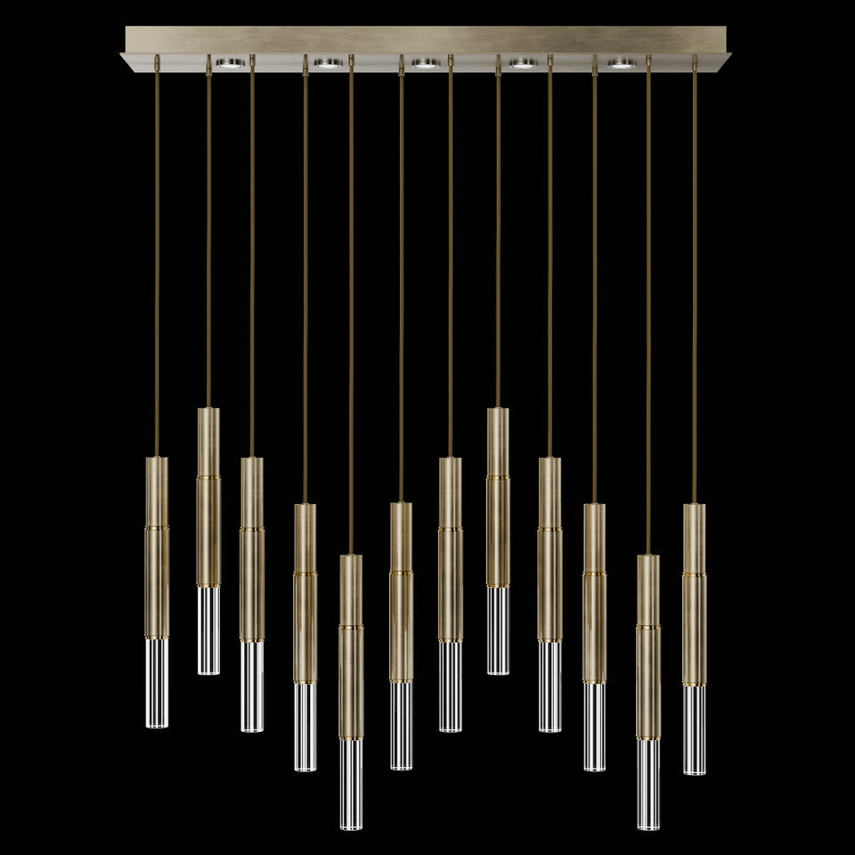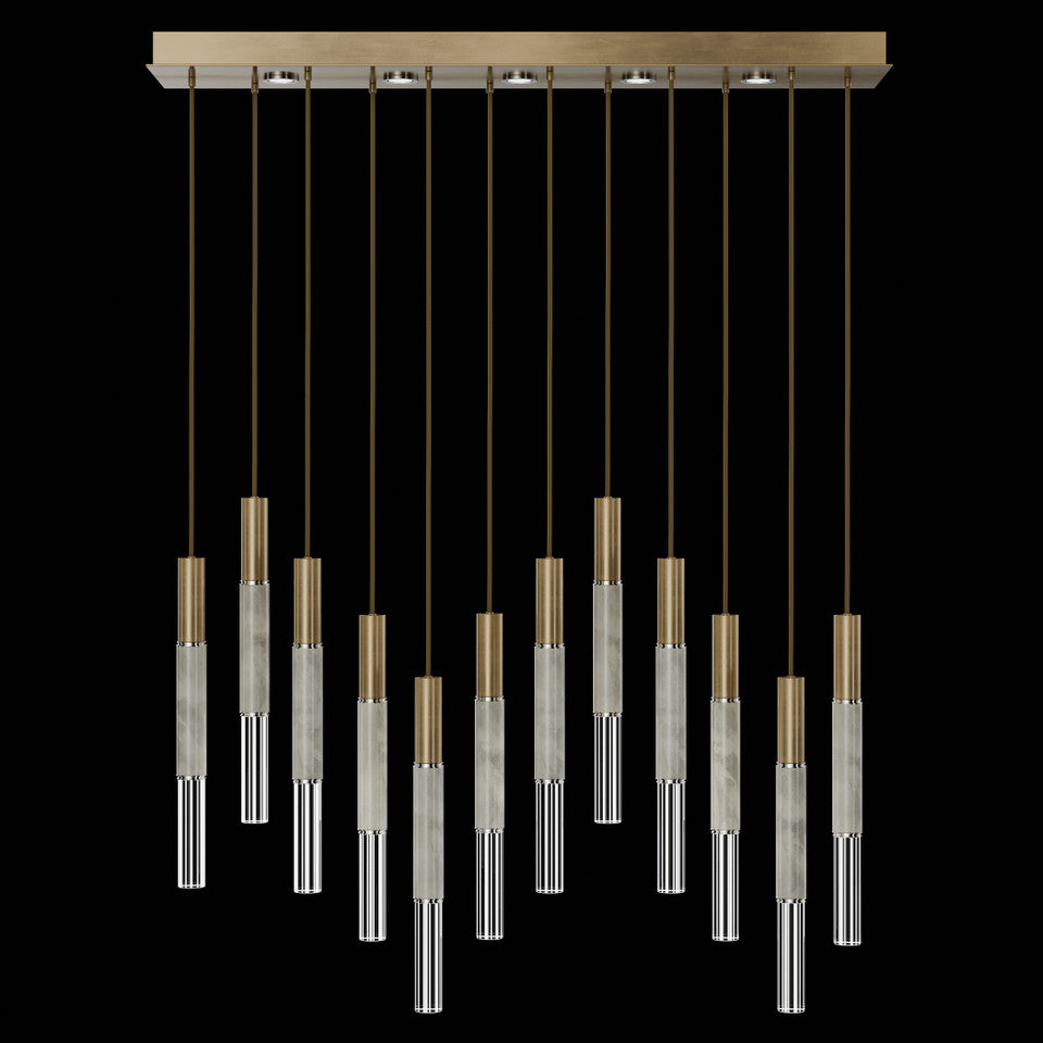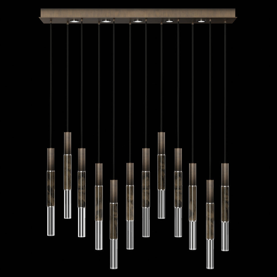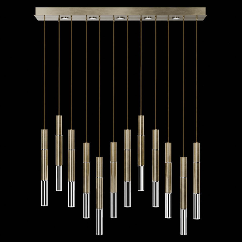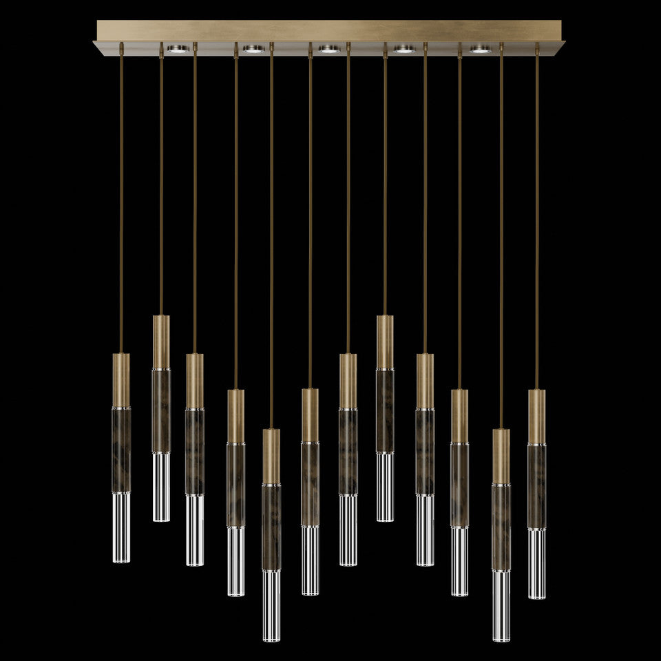 Suspended by adjustable cords, this LED fixture features straight tubular lines and the inclusion of metals carefully handcrafted to transition from parchment to magnificent glass, culminating in a stunning beam of light. Available in a wide range of exquisite finishes, including our five standard finishes and our newest Soft Ombre Bronze & Soft Ombre Silver, with the choice of two inline parchment colors, Charcoal and Smoke, and three special order options: Mink, Burnt Orange & Navy/Gold. Also available with no parchment. Upper & lower lights can be wired independently for single or dual light control.