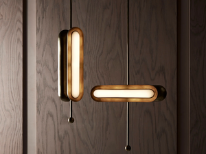 The Circuit series creates rhythm with the repetition of pure shapes. A glowing glass capsule nests in a brass shade, becoming a contained form that multiplies to construct larger fixtures.