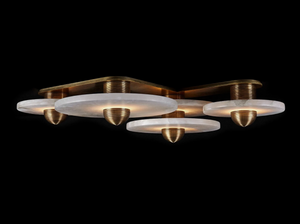 The translucent alabaster planes of the Median Series are intersected by a fluted brass form, referencing traditional Middle Eastern jewelry while pushing it through a futurist lens.  The stone glows from a light source that remains hidden, illuminating the relationship between the solid and the permeable.