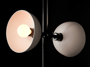 Inspired by the tension and dynamics of the circus act, this series cantilevers glowing bowls in movable formations on the ceiling or wall, creating a soft illumination and graphic silhouette.