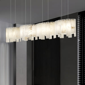 The Arctora Pendant captures the allure of glacial forms and sculptural rhythm. Its staggered alabaster panels echo the jagged contours of icebergs adrift, while the warm internal glow softens their edges like northern twilight. Suspended with minimalist cables, this statement piece blends natural stone with architectural harmony—perfect for dining rooms or grand contemporary spaces.