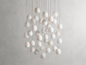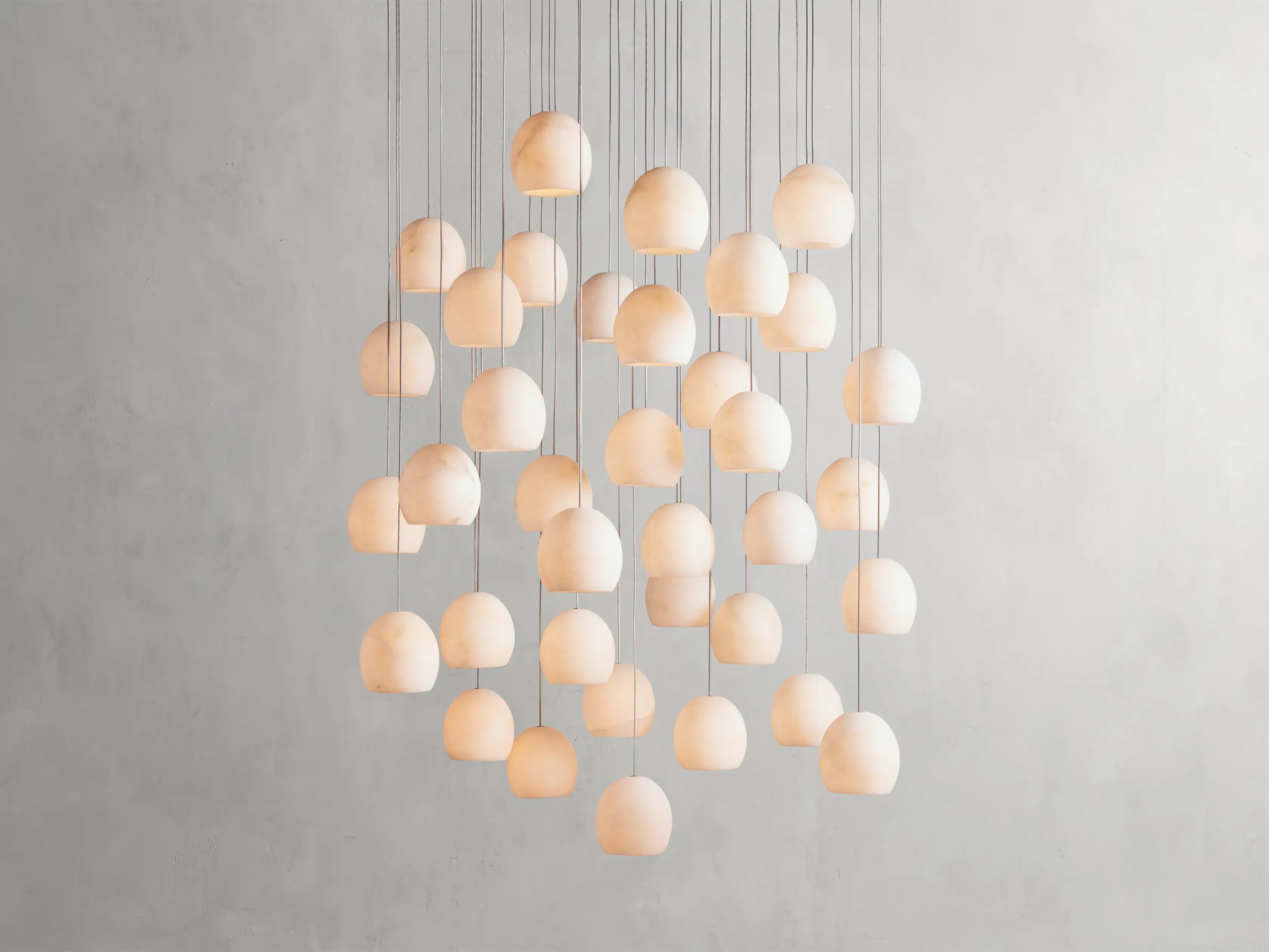 Featuring an adjustable cable cascading into a curved shade made from natural alabaster stone, our Arica Collection adds a touch of organic elegance. Designed to highlight the beautiful variations found in natural alabaster, each luminous shade showcases delicate swirls of unique veining making each pendant truly one-of-a-kind.