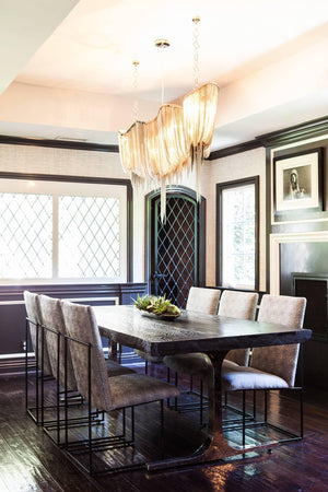 This coffee table has transformed my living room. The combination of the hammered metal base and clear glass top creates a luxurious look. It's a statement piece that draws compliments from everyone who visits.