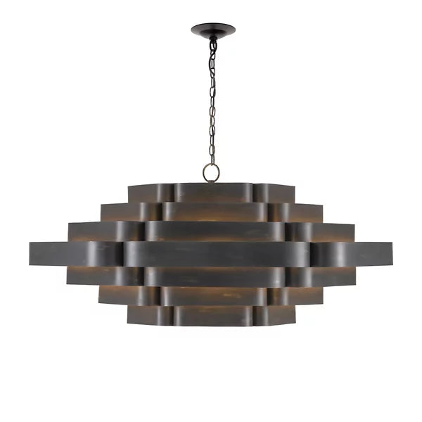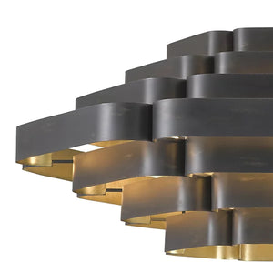 This chandelier is made from a tiered arrangement of wrought iron ribbons that light radiates from between for a dynamic, daring look that illuminates a room with a beautiful glow. A bold finish dresses up this design as it makes a statement and creates a warm, welcoming environment wherever it is installed.
