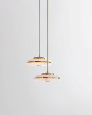 Made from the highly sought-after white alabaster sourced from the quarries of Northern Spain, the Beran pendant light by Bert Frank is a refined fusion of luxury and modern design. The pendant light features a natural alabaster stone diffuser seamlessly integrated with precision-machined brushed brass, suspended from a solid brass rod. Whether hung individually or clustered with varying heights, the pendant light emanates a warm ambient glow, enhancing the space with both style and ease, thanks to the unique veining of the stone.