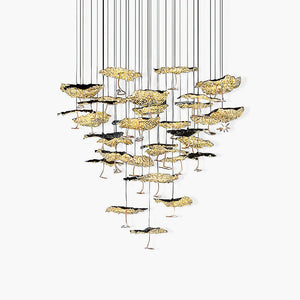 Crafted with metal shards delicately arranged in a moon-shaped design, the Brass Aviary Constellation Chandelier is a stunning addition to any home. Its dome-shaped canopy is intentionally fractured to create an eye-catching feature on your ceiling. This vibrant steel-clad artwork casts light in all directions, making it the perfect accent of celestial beauty and radiance.