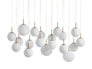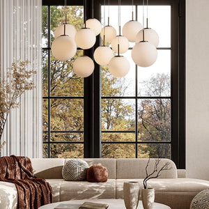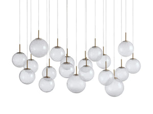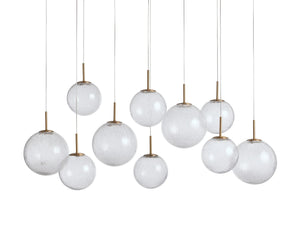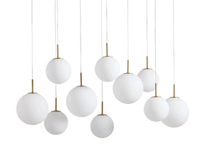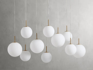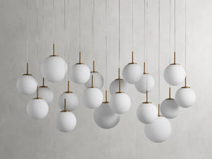 Expertly crafted glass globes drop from modern satin brass hardware in our Kasan Lighting Collection. Each globe is mouth blown by our artisan partners and features an integrated LED light that illuminates the glass from within, bringing a unique, organic touch into your home.