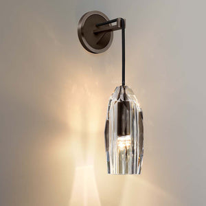 The Chap Wall Sconce is machined from solid brass. All parts are hand polished and patina’d. The lead crystal shade is hand polished.