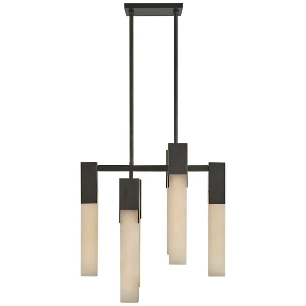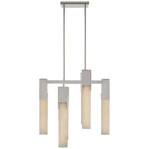 Make a statement with the Covet Chandelier by Visual Comfort. A collection of beautiful alabaster shades suspend in midair through an attachment to a firmly secured canopy at your ceiling. These shades are encased by metallic frames that fix the shades in a vertical orientation. From behind these shades, incandescent bulbs splay vivid light throughout your environment. This hanging multi-light fixture is made available in a variety of sizes so that you can choose the lighting option most suited to your needs.