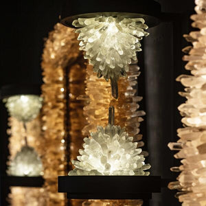Expertly crafted with precision, the Quartz Chandelier embodies the artistry of fine design. Each quartz element is carefully shaped to highlight its natural striations and gentle translucence, reflecting exceptional attention to detail. Built for both beauty and durability, where craftsmanship meets the quiet strength of nature.