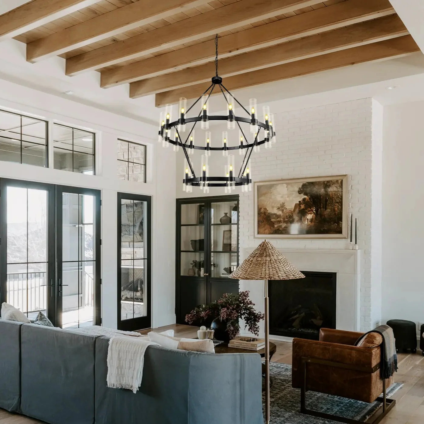 Farmhouse Wagon Wheel 2 Tier Chandelier 48" 60" - Fast Delivery-1-Luxehomezone