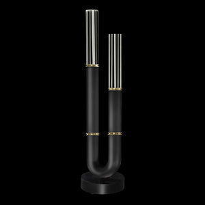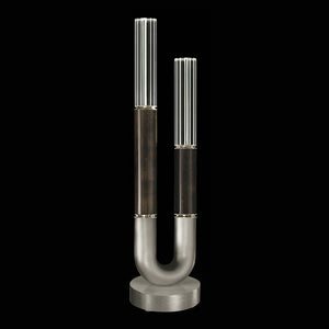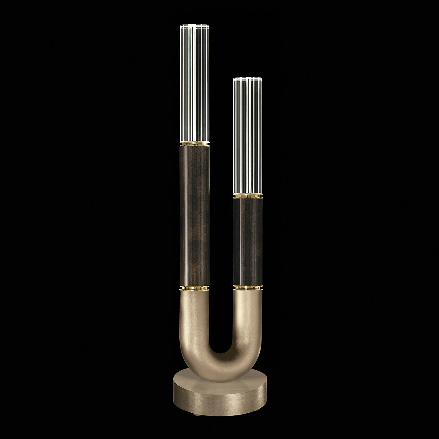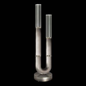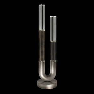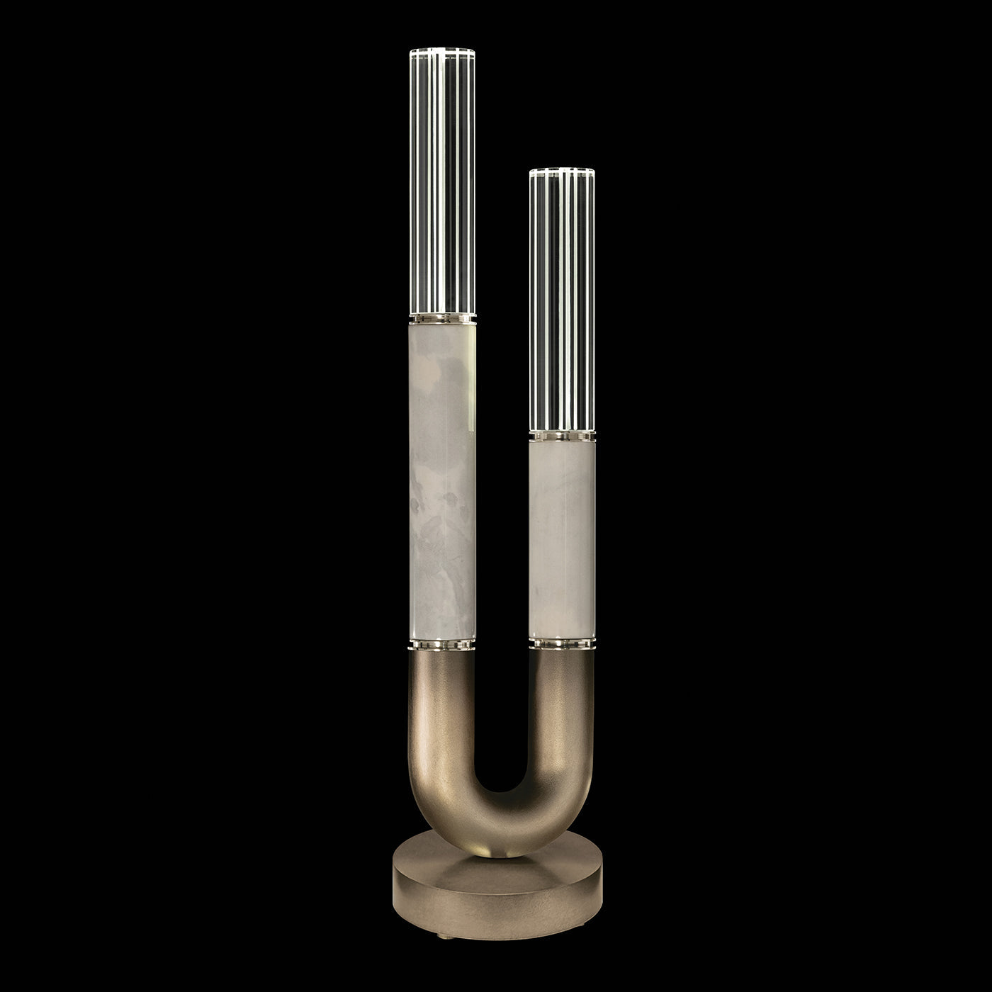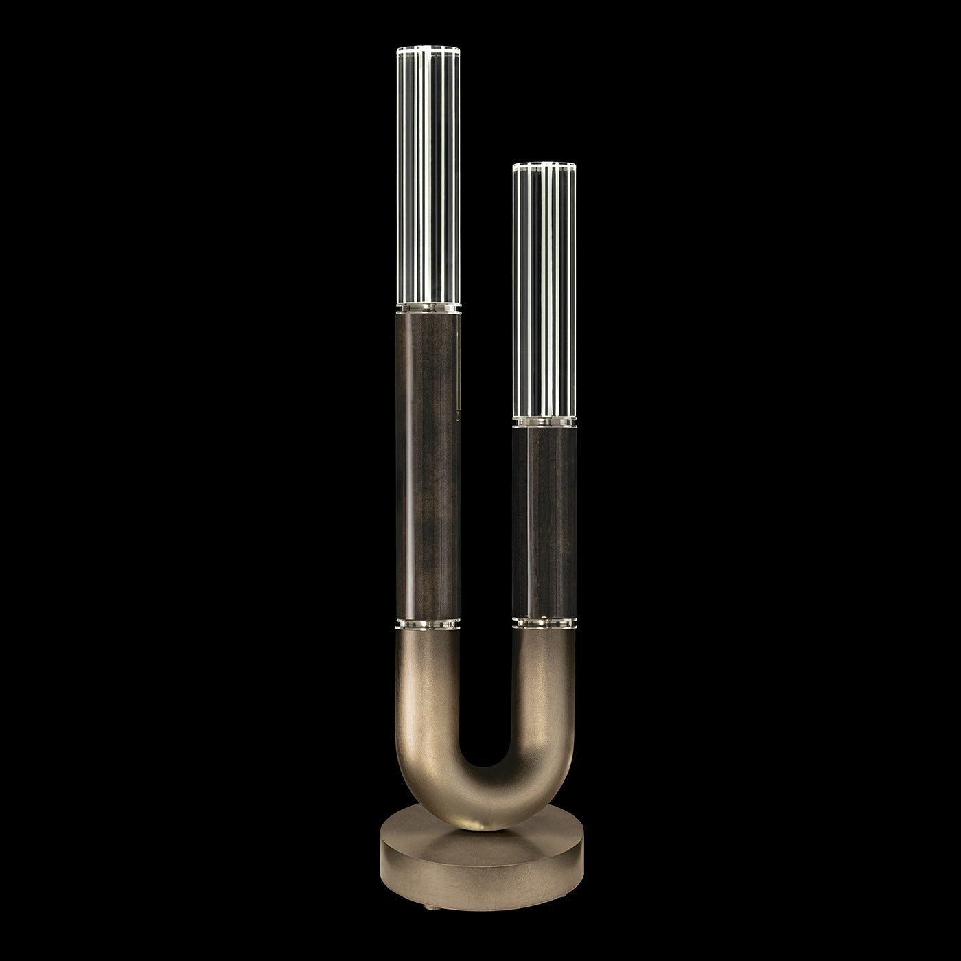 Table lamp featuring soft curves and the inclusion of metals carefully handcrafted to transition from parchment to magnificent glass, culminating in a stunning beam of light. Available in a wide range of exquisite finishes, including our five standard finishes and our newest Soft Ombre Bronze & Soft Ombre Silver, with the choice of two parchment colors, Charcoal and Smoke. Also available with no parchment.