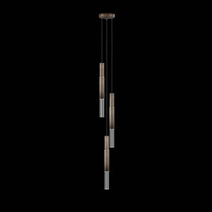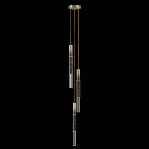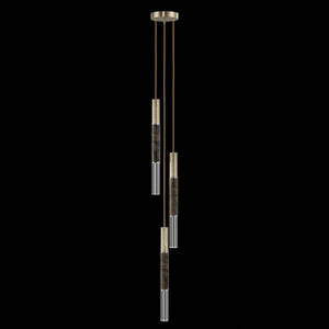 Suspended by adjustable cords, this LED fixture features straight tubular lines and the inclusion of metals carefully handcrafted to transition from parchment to magnificent glass, culminating in a stunning beam of light. Available in a wide range of exquisite finishes, including our five standard finishes and our newest Soft Ombre Bronze & Soft Ombre Silver, with the choice of two inline parchment colors, Charcoal and Smoke, and three special order options: Mink, Burnt Orange & Navy/Gold. Also available with no parchment.