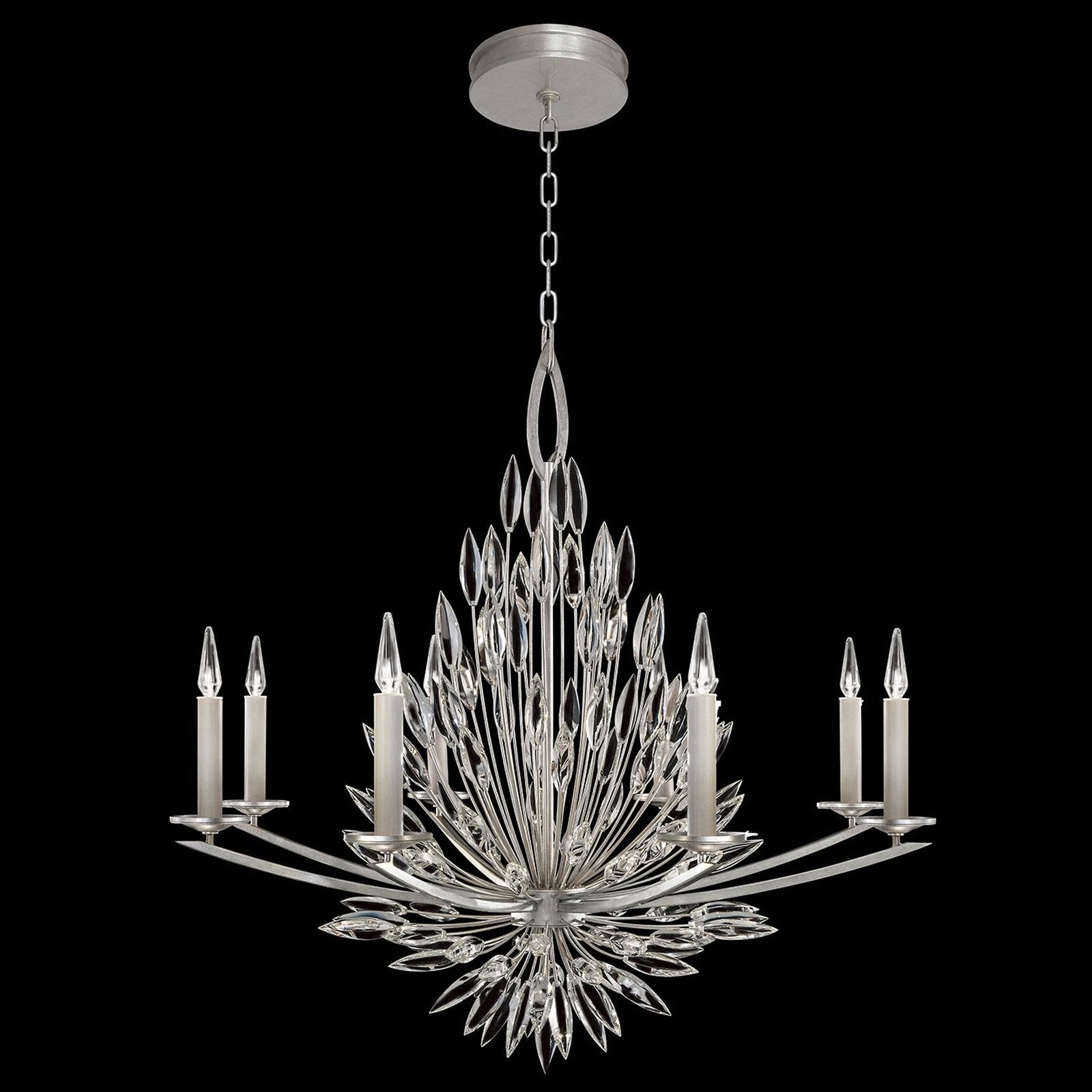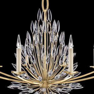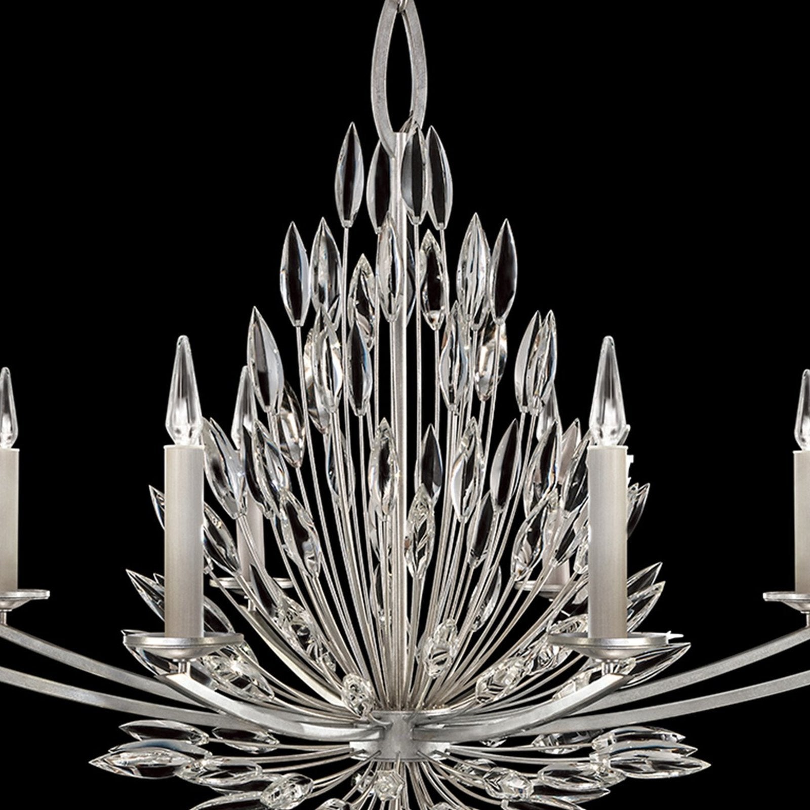 Chandelier with graceful bouquets of faceted crystal lily buds that create a naturally elegant lighting effect. Available in Gold and Silver finish.
