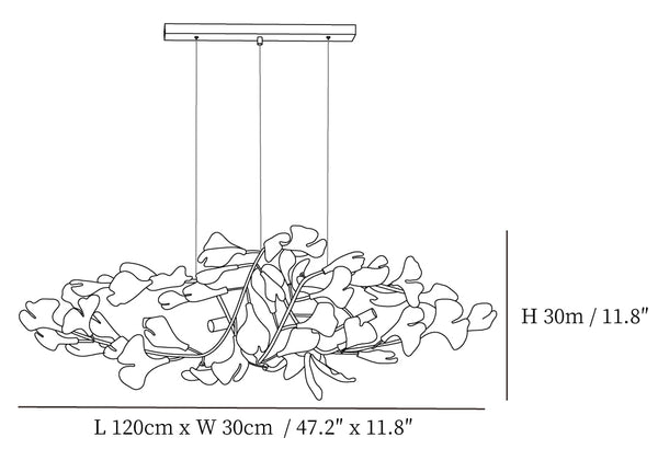 This ginkgo leaf chandelier is made of iron and decorated with delicate ginkgo leaves made of ceramic. The overall design cleverly combines natural elements and modern craftsmanship, giving it a natural charm without losing a sense of modernity. The iron bracket ensures the stability and durability of the chandelier, while the ceramic ginkgo leaves show a unique luster under the light, bringing a warm and elegant atmosphere to the indoor space. This chandelier perfectly illustrates the harmony between craftsmanship and nature, making it ideal for every home space.