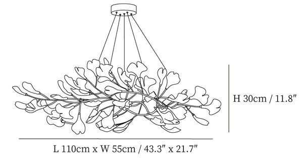 This ginkgo leaf chandelier is made of high-quality brass and ceramics. The golden color of brass adds a touch of classic luxury to the chandelier, and is perfectly combined with the exquisite ceramic ginkgo leaves on it, showing a modern yet classic beauty. The brackets made of brass ensure the sturdiness and durability of the chandelier, while the ceramic ginkgo leaves shine under the light, emitting a tranquil and soft luster, creating a warm and elegant atmosphere for the indoor space. A perfect blend of modern craftsmanship and natural beauty, this chandelier will undoubtedly be the focal point of any space.
