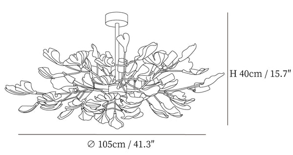 This classic yet modern Gingko Chandelier J is an eye-catching statement piece for any space. Crafted from luxurious brass and intricately detailed ceramic ginkgo leaves, the chandelier emits a tranquil, soft luster, adding a touch of elegance to any room. The brackets ensure sturdiness and durability, creating a piece that will be the centerpiece of your home for years to come. Experience the luxury of a Gingko Chandelier J for yourself!