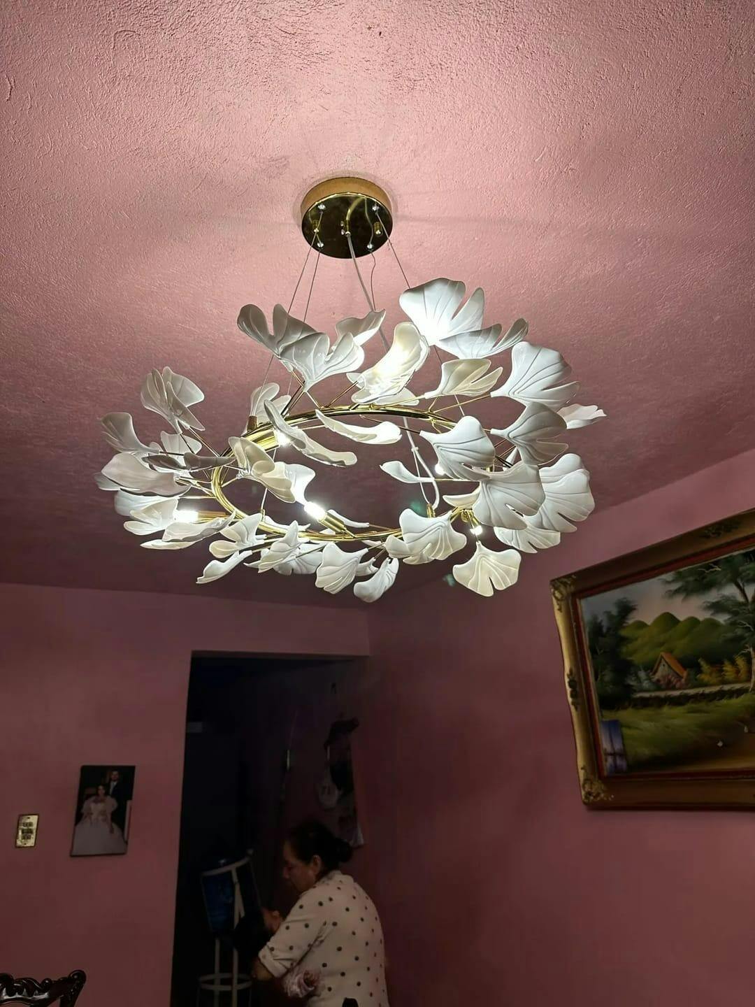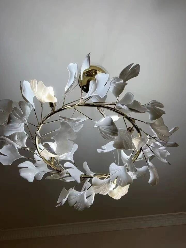 This ceramic ginkgo tree petal chandelier shows its luxurious style in overall design, material, and manufacturing technology. The metal lamp body is covered with exquisite ceramic petals, which reflects the perfect combination of lighting design and natural plants.