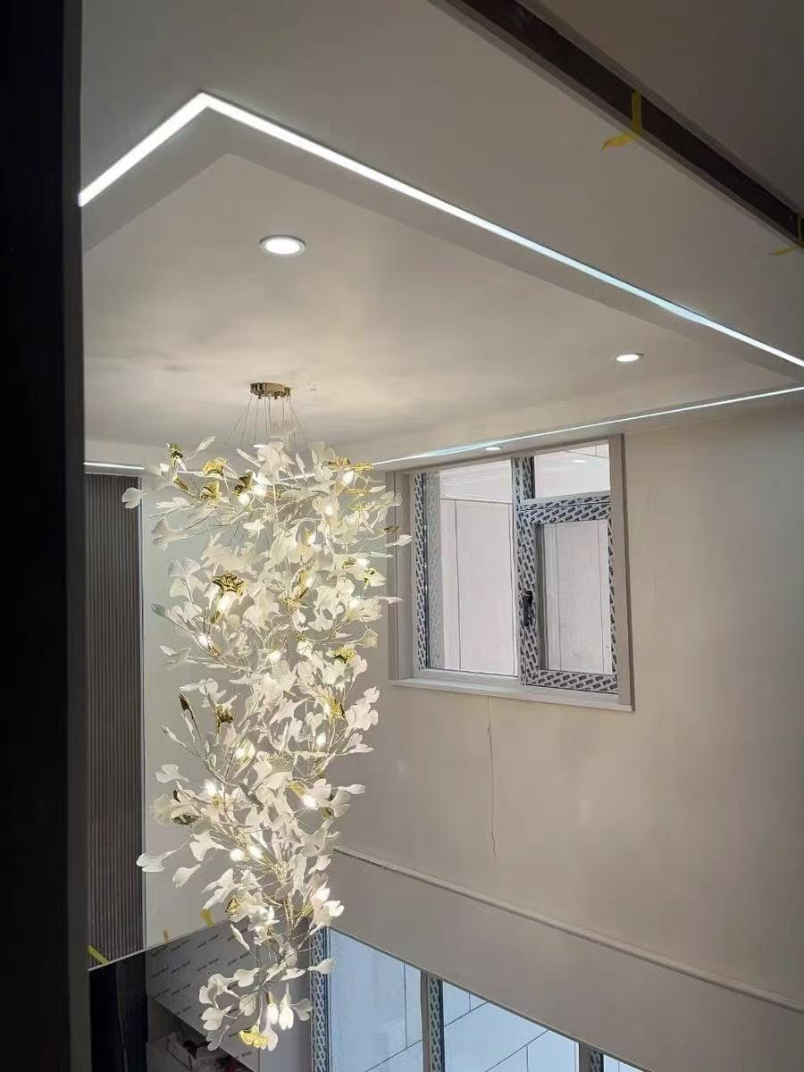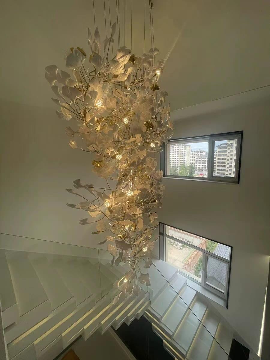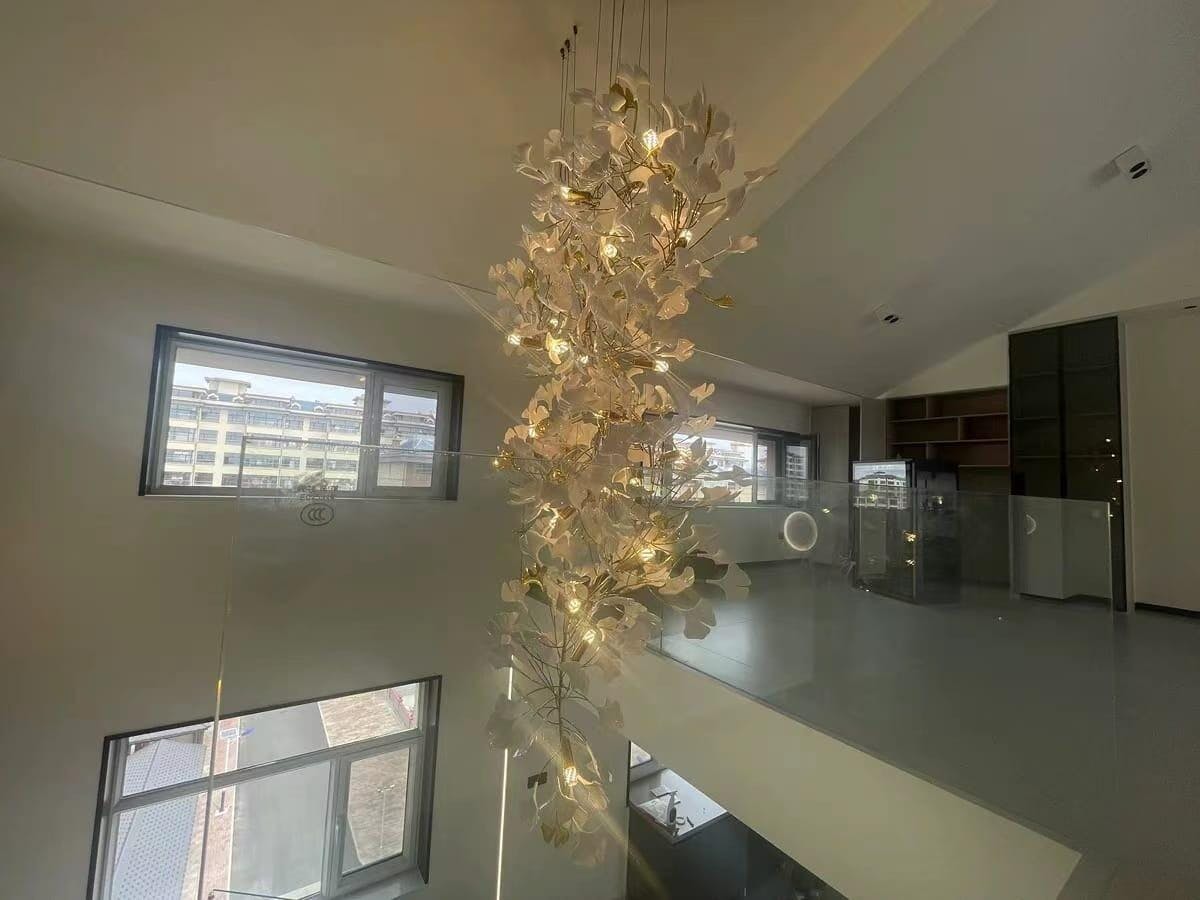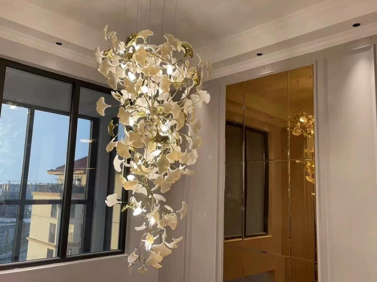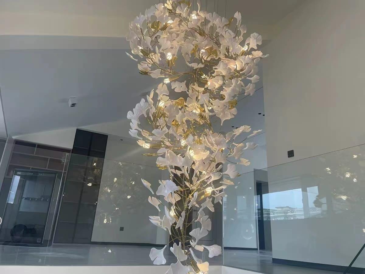 Experience the luxurious style and exquisite design of the Gingko Chandelier Z. Handcrafted porcelain leaves and metal body create a mesmerizing light sculpture, bringing warmth and well-being to any space. With its natural and dynamic energy, it's not just a light but a captivating artwork.