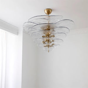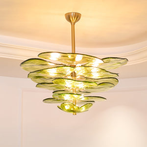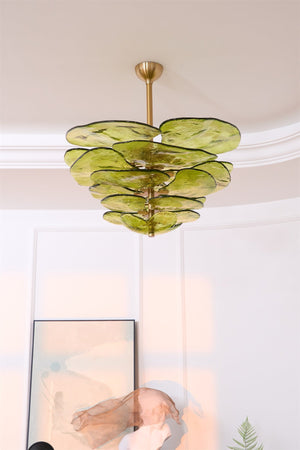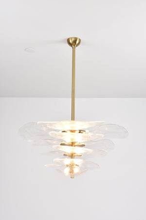The Golden Petal Chandelier is a captivating blend of nature-inspired elegance and modern luxury. Its layered, petal-like glass discs in warm amber hues mimic the gentle flow of flower petals, casting a soft, ambient glow that adds warmth and sophistication to any space. Suspended by a sleek gold rod, this chandelier is a perfect statement piece for dining rooms, living rooms, or entryways, bringing a radiant touch of elegance to your decor.