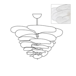 16-lights Size: Dia 81cm x H 37cm / ∅ 31.8″ x H 14.5″ (Weight: ~22kg/48.5lbs), (E14 bulbs x 12 pieces, G4 bulbs x 4 pieces)