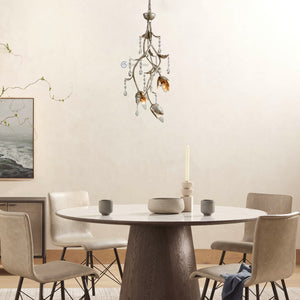 This is collection combines Gothic-style ironwork with Italian glass. The features sliver wrought iron with delicate lines, exuding a unique classical charm. The lampshade is made from exquisite Italian glass, available in colored or clear options, casting a soft and enchanting glow when the light passes through.And creating a mysterious and elegant ambiance, making it perfect for spaces like living rooms or dining areas.
