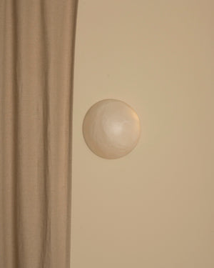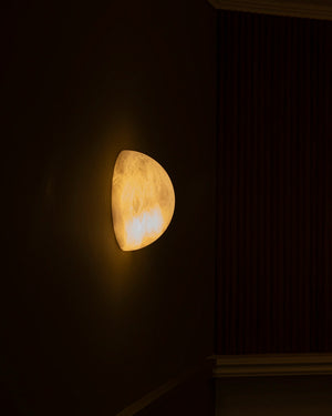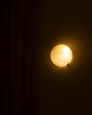 Made in Spain, the Haveno alabaster wall lamp by designers Simone & Marcel combines modernity and elegance. Carved from a large demi-sphere of alabaster, this minimalist wall light creates a warm diffused light. Alabaster is a natural stone with variations in tone and veining. For multiple wall lights, the designers select similar stones for a harmonious result.