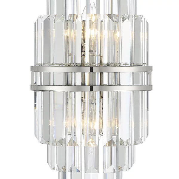 Crystorama presents the Hayes Wall Sconce, creating a lasting impression due to elevated composition notes. Doubling as a piece of art, the Hayes is comprised of tiered multi-faceted crystal secured by a polished nickel steel frame. The decadent finishing touches modernizes its surroundings while creating a focal point for your space.