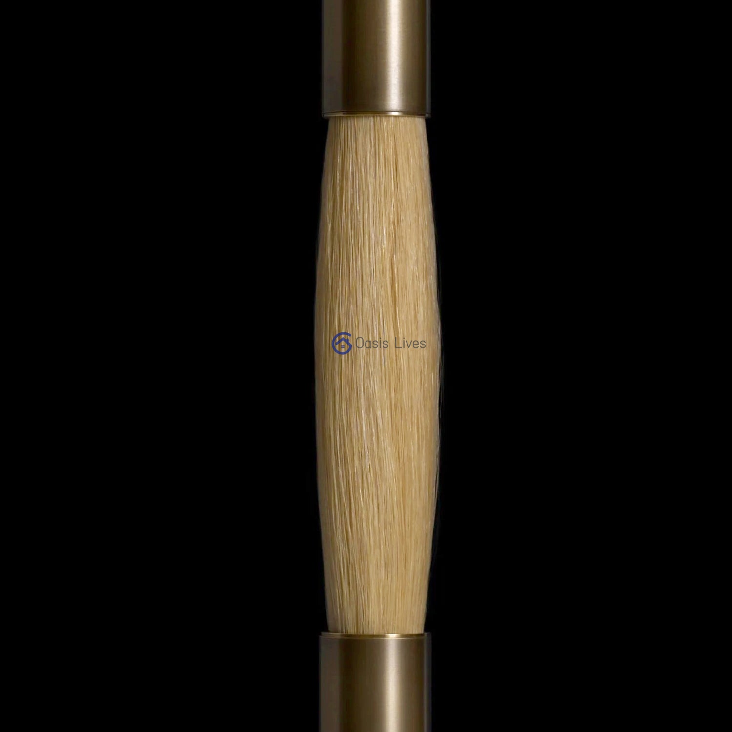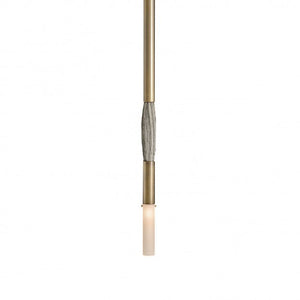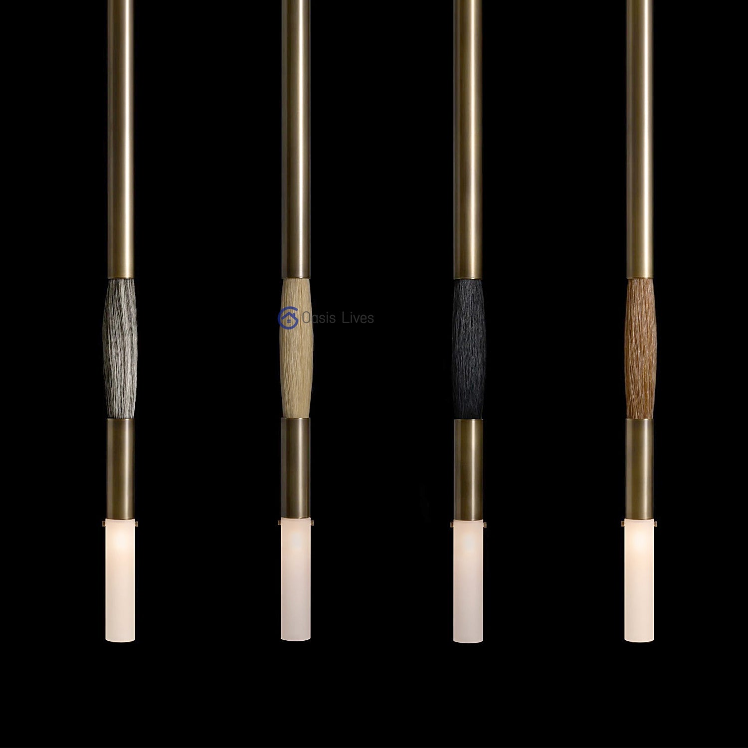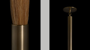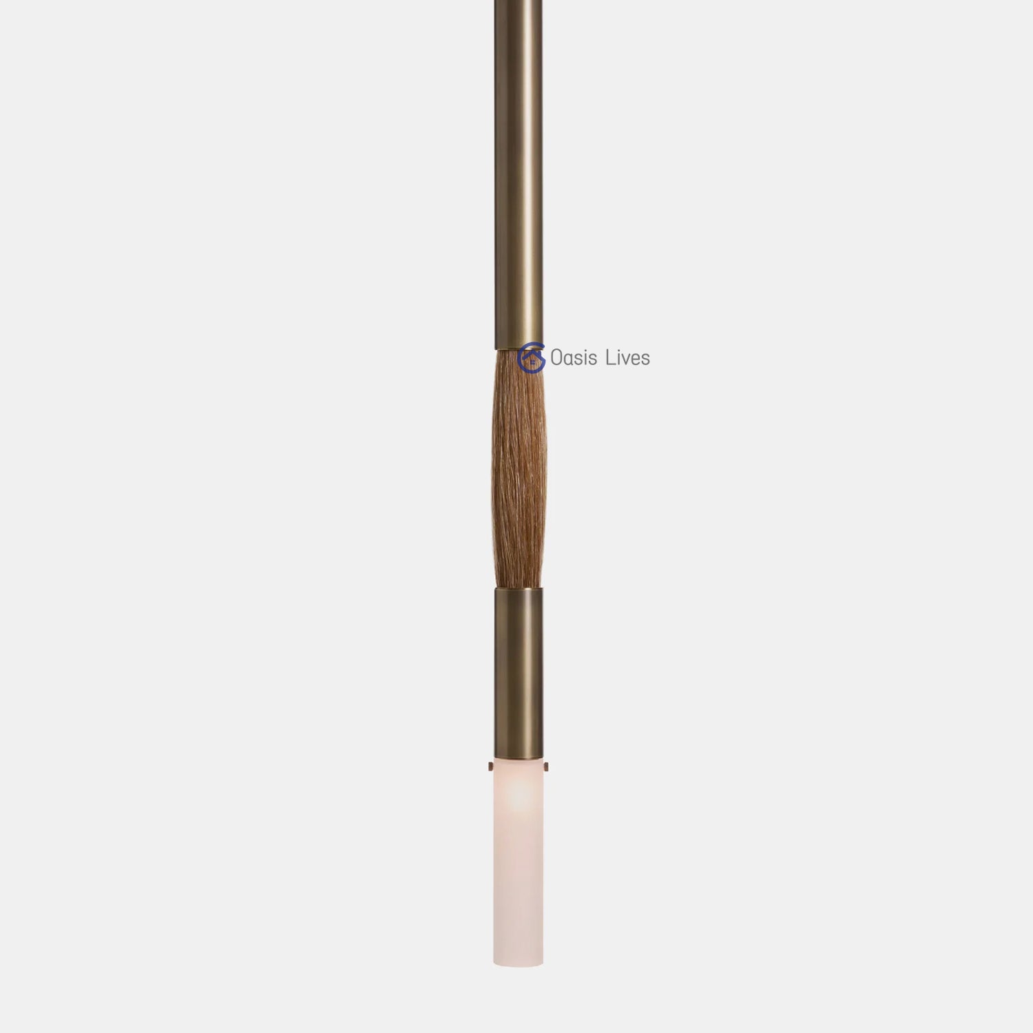 This Horsehair Pendant combines horsehair, brass, and etched glass for a unique design and exquisite materials. The warp of the horsehair combines with the brass body of the lamp to create a visual effect that is both sturdy and elegant.