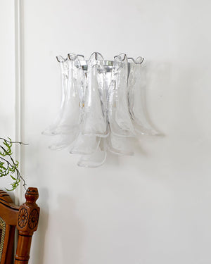 The Horseshoe Wall Lamp is a striking piece that blends modern sophistication with a unique, eye-catching design. Shaped like a horseshoe, the lamp’s cascading glass elements mimic flowing petals, offering a soft, diffused glow that creates a warm and welcoming atmosphere. The chrome-plated base provides a sleek, polished contrast, enhancing its contemporary appeal. Ideal for living rooms, bedrooms, or hallways, this wall lamp serves as both a functional light source and a stylish accent, making it the perfect addition to any modern home looking to add a touch of elegance and charm.