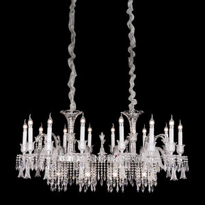 Composed of asfour crystal and 24pb glass. The materials converge to create a stunning interplay of light and clarity. The 14 lights. Compatible with e14/e12 bulbs. Cast a warm glow. Elevating the ambiance of your space. Finished in chrome. The metal accentuates the clear color palette. Contributing to its contemporary allure.