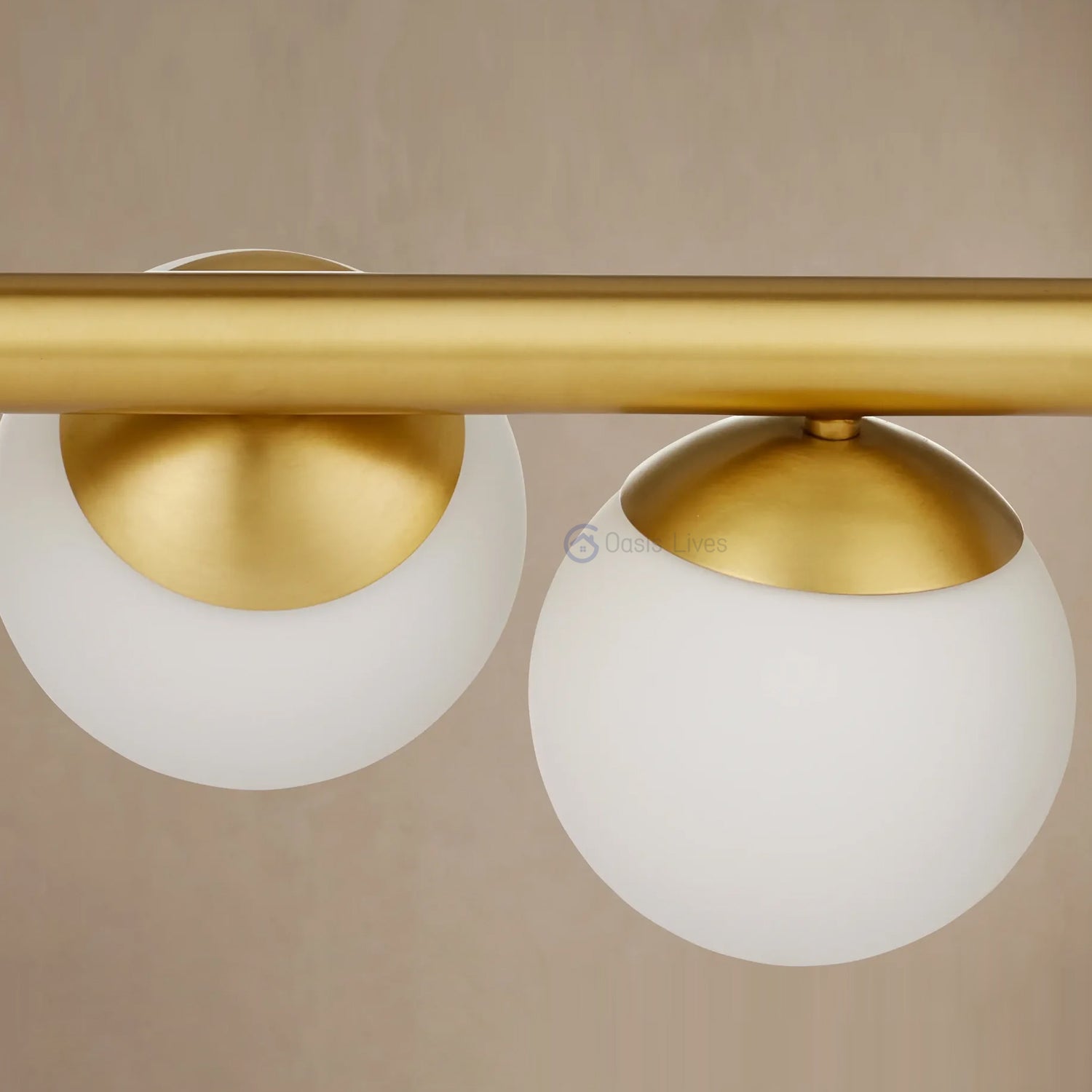 • Crafted from metal with a brass finish and glass globes.