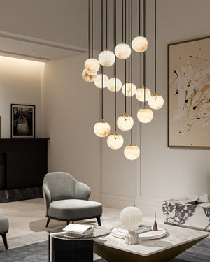 LED Cluster Lighting with Moon Alabaster Ceiling Round Pendant Lamp for staircase Livingroom bedroom