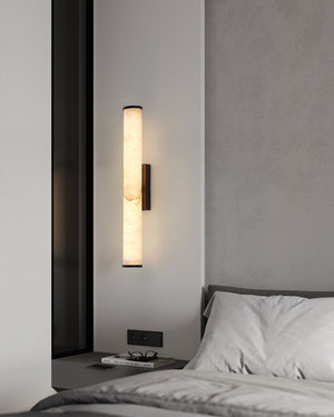 LED Copper Cylindrical Natural Marble Alabaster Wall Sconce Lamp,H30/40/50/60CM