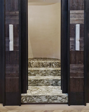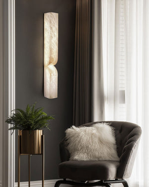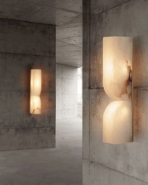 This Alabaster Essence Wall Sconce is crafted from rich alabaster material, making it a timeless LED light and decorative accessory. The solid stone is intricately carved to perfectly create intentional internal curves. Elevate your home’s aesthetic with a lamp that merges nature’s elegance and contemporary design.