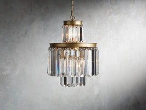 French Art Deco style of the 1920s is reborn in our glamorous Leland Lighting Collection, featuring layered row upon row of faceted glass crystals from a rustic iron frame.