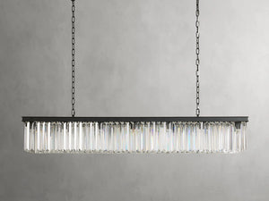 French Art Deco style of the 1920s is reborn in our glamorous Leland Lighting Collection. Hung from a rustic iron frame, Leyland creates an atmospheric glow with its rows of hand-polished multifaceted glass crystals.