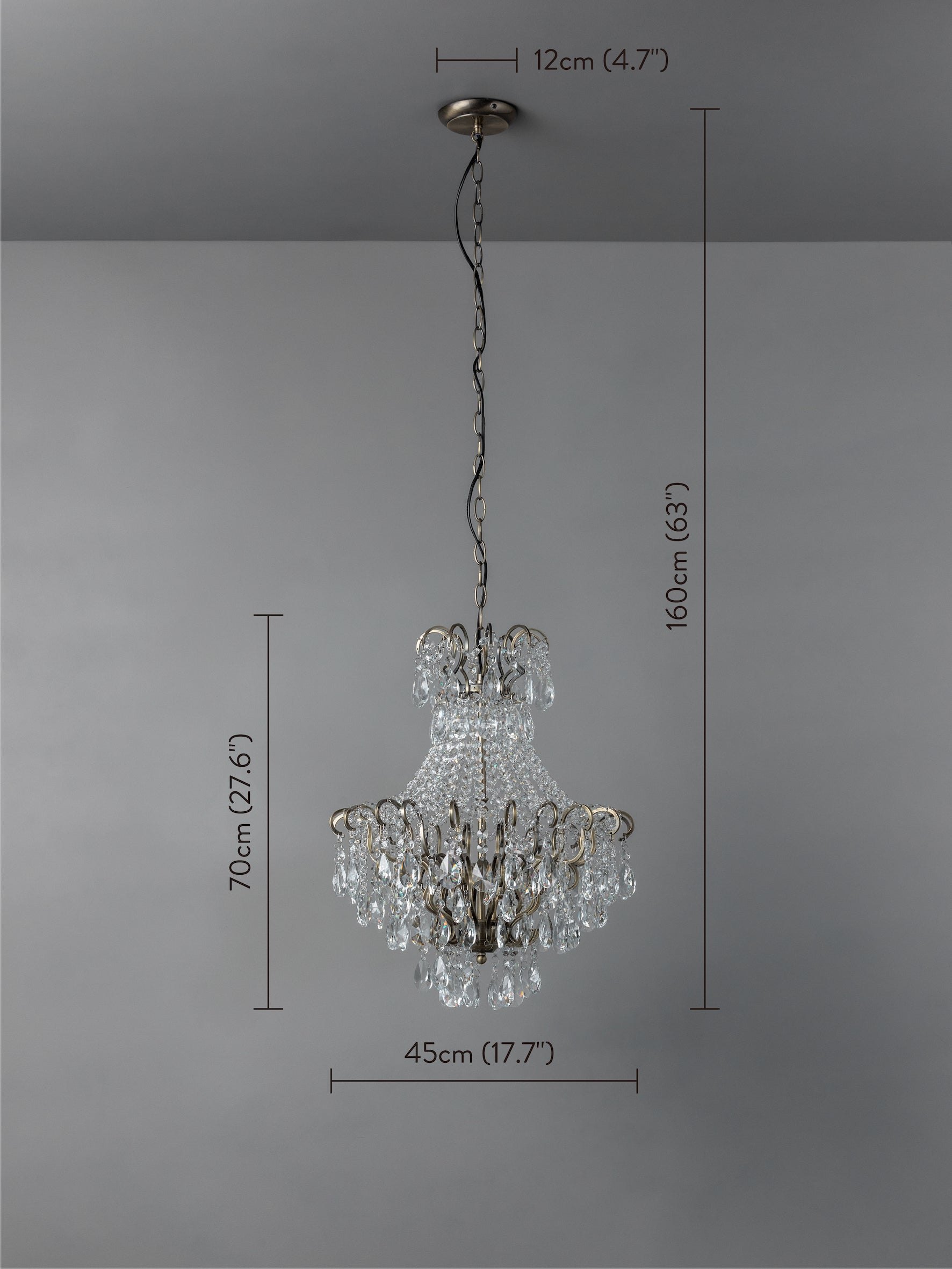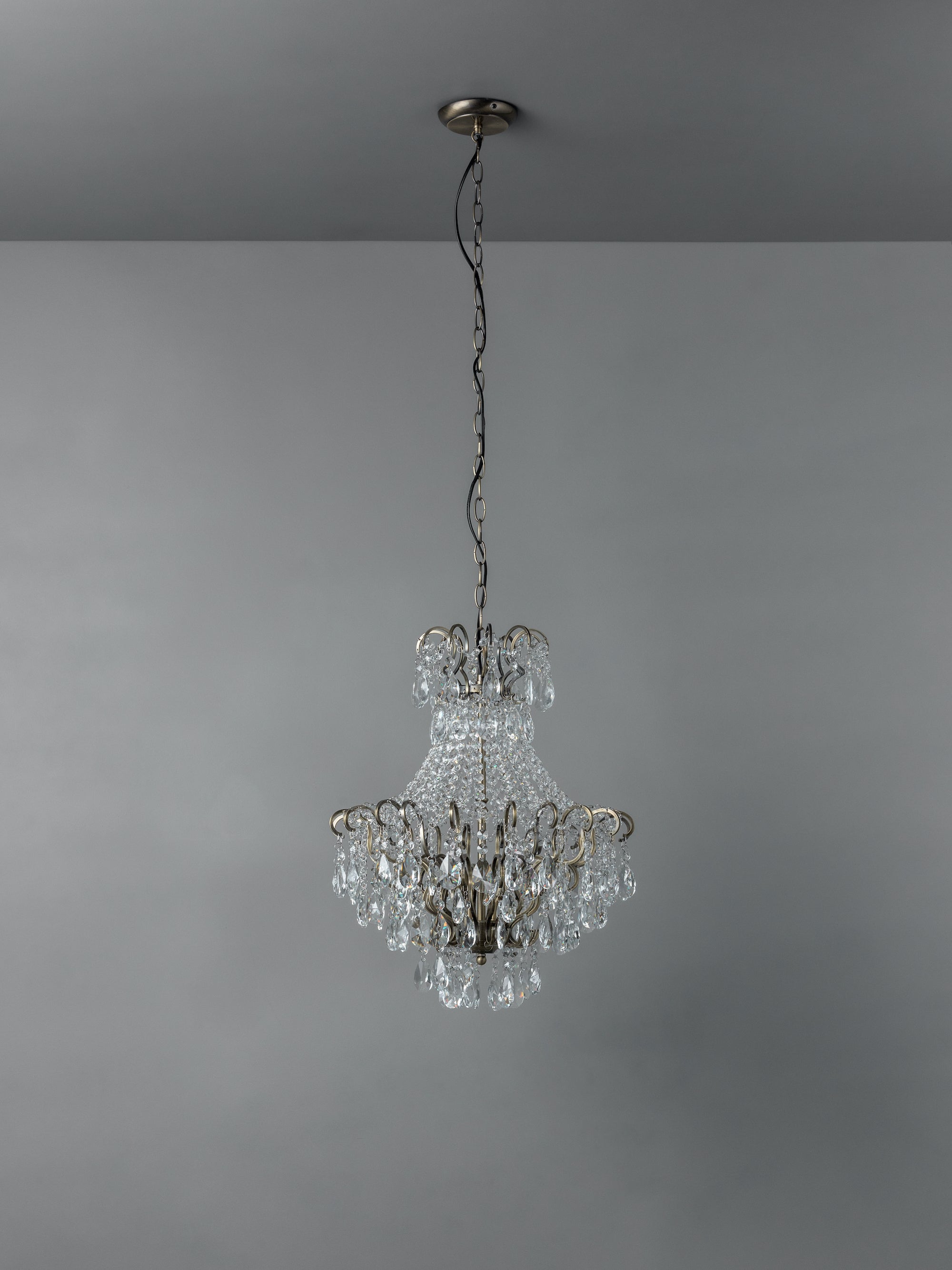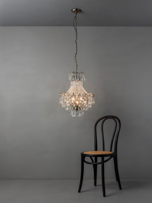 Lavish, french, vintage. We are constantly inspired by fellow lighting designers of the past. If only we could all find a vintage cast chandelier in some dusty chateaux deep in the Loire valley…well here's the next best thing. Hand crafted, adorned with crystal glass beads and drops and finished in antique brass. You'd never know...