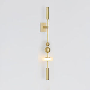 The Lumos Wall Sconce by Oasislives combines contemporary design with subtle sophistication. Featuring a series of smooth metal rods in a polished finish, interspersed with frosted glass diffusers and sculptural spherical accents, this sconce creates a balanced and striking visual. The soft, diffused light casts a warm glow, perfect for enhancing the ambiance of modern interiors. Ideal for living rooms, hallways, or bedrooms, the Lumos Wall Sconce adds an artistic and refined touch, making it a standout piece in any contemporary home.