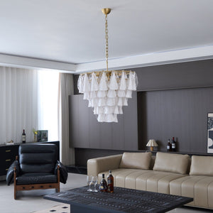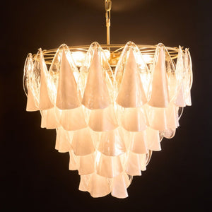 Inspired by the elegance of falling petals and moonlit reflections, the Lunara White Murano Chandelier captures attention with its sculptural grace. Each hand-blown Murano glass leaf alternates between opaque white and crystal-clear, creating a luminous dance of light and shadow.